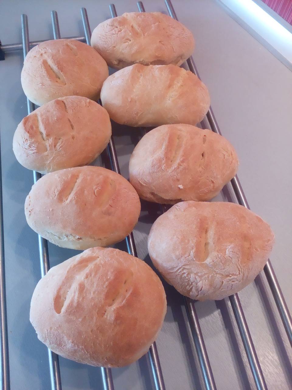 Bagetky: z osmi až deseti dílu vytvarujte bochánky nebo bagetky a nahoře nařízněte nožem.